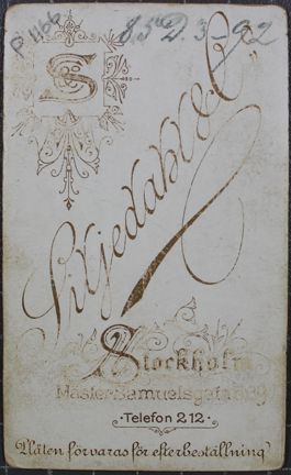 Bilden är tagen i Liljedahl & Co:s ateljé på Mäster Samuelgatan 39 (i dåvarande fastigheten Gropen 8)