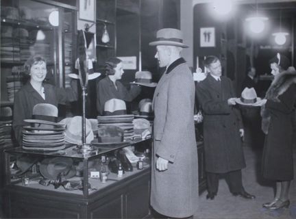 Interiörsbild från Bernhard Bäcklund Herrekipering på Kungsbroplan 2. Herrekiperingen öppnade upp sina portar 1921. Verksamheten lades ned på hösten 1962.