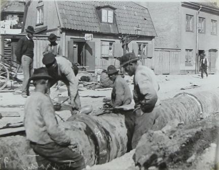 Torsgatan/Tegnérgatan. Gasledning 1897