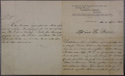 P.S. För den händelse något afseende skulle fästas vid min anhållan, kunde jag ju få veta det på sätt som Herr S. finner lämpligt, i bästa fall kunde ju pengarna sändas till Pastorn härstädes Herr A. Hylander, hvilken om så önskas kunde vaka öfver att de blefvo väl använda.