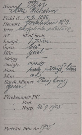 På baksidan av polisens fotografi finns följande anteckningar om Sten: