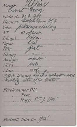 På baksidan av polisens fotografi finns bland annat antecknat: "Vänstra underarmen krokig efter ett brott". Uhlén hamnade på Allmänna försörjningsinrättningen drygt ett år efter upploppet och bara ett par veckor senare dog han endast 17 år gammal. Hans namn stavas omväxlande Uhlén, Ulén och Ullén i olika handlingar. Baksidan av kortet: