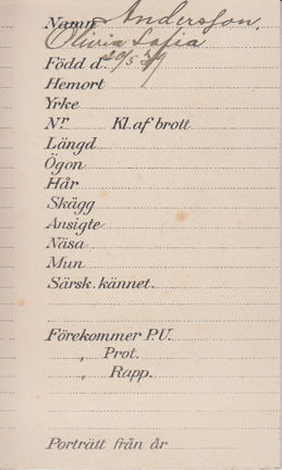 Olivia Andersson, dömd för bedrägeri - polisfotografi