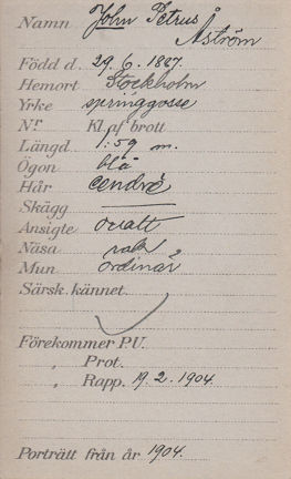 I december 1903 hade Åström tillsammans med en kompis förfalskat en check. Läs mer om det i en polisrapport!