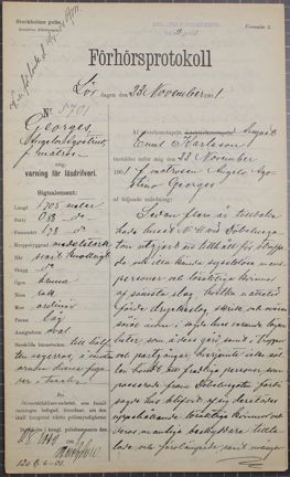 "Förhörsprotokoll Lördagen den 23 November 1901.