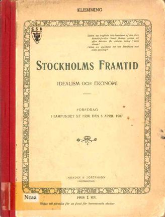 Fredagen 5 april 1907 höll arkitekten Wilhelm Klemming (som bland annat ritade Centralbadet) ett föredrag inför Samfundet S:t Erik. Han ansåg att stockholmare visar ”utomordentlig likgiltighet” när det gäller stadens framtid. Vi stockholmare kan ”arga upp oss ibland”, om någon drastisk oönskad förändring sker, men ”någon bestående lifaktighet äro vi uppenbarligen ej fallna för”.