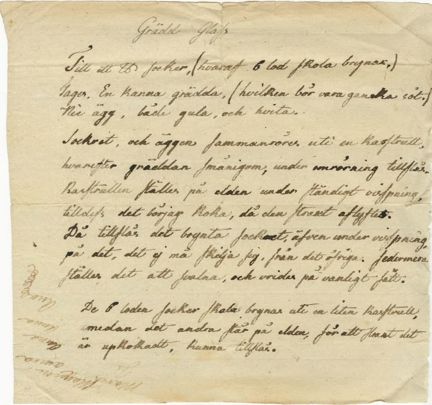 Det handskrivna receptet på gräddglass kommer från Esplunda arkiv på Riksarkivet: