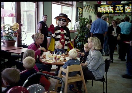 En clown bland barnen på Mc Donalds vid Alviks Torg.