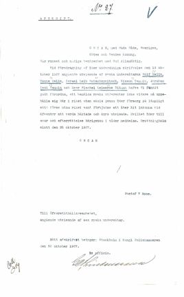 Den 13 oktober 1907 blev det en polissak när sex ryssar rök ihop i ett slagsmål. Den 25 oktober beslöt Kungl. Maj:t att utvisa samtliga sex ur Sverige. I det här dokumentet meddelas Överståthållareämbetet i Stockholm att de ska verkställa utvisningen.