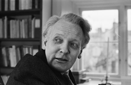 Porträtt av Per Anders Fogelström i sitt arbetsrum i bostaden på Fjällgatan 30.