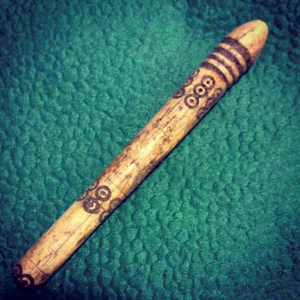 Stylusen är ca 10 cm lång och 1 cm bred. Dem är tillverkad av ben eller horn och har dekoretats med inbrända punktcirklar.