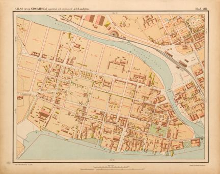 Stockholms stadsarkivs kartsamling NS 442, SE/SSA/0234/J 4 A:12 Atlas öfver Stockholm upprättad och utgifven af A. R. Lundgren år 1885, (Karta i 13 blad) Kartblad 8