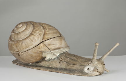 Modell av en vinbergssnäcka, tillverkad av papier-maché. Modellen är kraftigt uppförstorad till cirka skala 8:1. Den är 71 cm lång och målad i naturtrogna färger. Modellen är isärtagbar i ett tiotal delar, vilket innebär att man kan betrakta och undersöka snäckans inälvor, andningsorgan, nervknippen och blodkärl. Mässingskrokar och -öglor håller ihop alla delar som går att ta isär. Små klistermärken med text på franska finns på olika delar och organ.