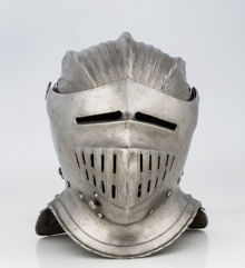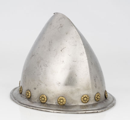 Päronhjälm, eller cabaset, från 1500-talets andra hälft. Spetsig topp och ett brätte nedtill. Hjälmen tillverkad av stål med dekoration i form av tolv mässingsrosetter. Rosetterna är sekundära, det vill säga de har tillkommit senare, troligtvis på 1800-talet. Cabasetten är en urspungligen italiensk hjälmtyp som huvudsakligen användes av infanterietrupper.