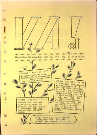 I föreningens tidning Va! kan man se vilka aktiviteter som var på gång, samt läsa kåserier, artiklar och roliga historier. Det här numret innehåller bland annat en skämtsam berättelse om skolan.