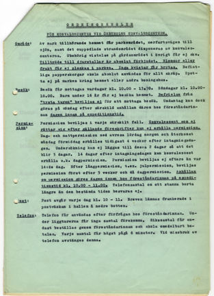 Ett av de sanatorier som låg under Stockholms stads tuberkulosbyrå, Centraldispensären, var Ösbyholms konvalescenthem utanför Norrtälje. I Pdf.en kan du läsa vilka regler patienterna var tvungna att följa då de vistades på Ösbyholm året 1949.