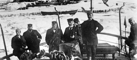 Medlemmar i Andréexpeditionen på väg till Spetsbergen ombord på M/S Svensksund