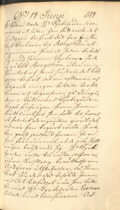 "Berättade Hr: Kyrkoherden Hermonius, at sedan han fått weta det Lindgren blifwit död, har han skickat klockaren til Bergström, at förnimma huru de sedan betedt sig med honom: klockaren hade ej råkat Bergström, utan inhämtat af hans hustru, det Lindgren blifwit död om aftonen och följande morgon bittida borttburen och begrafwen på diurgården i båtsmans kyrkogården. Uppå förfrågan, hwem honom borttburit, hade han fått til swars, at folcket deri gården giordt det och när han begärt weta, hwilken präst jordfäst honom, har han förenummit, at de icke haft någon Präst med sig. Hr Kyrkoherden wille til nästa session gifwa skriftelig berättelse om Lindgrens utlåtelser, då han kort för des död besökte honom, wid det tillfället när han tillika med Hr Kyrkoherden Eckman talade med Ericssönerne. Och som kyrkoherden Prochæus gaf wid handen, at en Ericssönernes kamerad, wid namn Cygnell, warit ibland dem som borttburit Lindgren, resolverades at han tillika med Bergström skulle upkallas til nästa session."