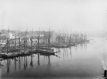 Vedskutor läng Strandvägen sedda från Nybrohamnen.