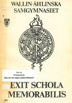Den här skriften skrevs i samband med att Wallin-Åhlinska samgymnasiet lades ned 1972. Det hade då funnits i 33 år efter en sammanslagning mellan de betydligt äldre Wallinska och Åhlinska skolorna. Första kapitlet är en kronologisk genomgång av viktiga händelser i de båda skolornas historia. Sedan följer berättelser från tidigare elever och om några av lärarna. Flera av dem finns med på bild, ibland som karikatyr! Efter nedläggningen flyttade Enskilda gymnasiet in i de gamla lokalerna. 34 sidor.