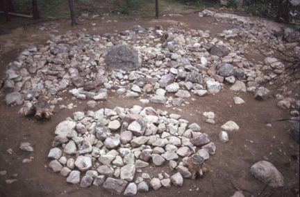 Under stenpackningen i så gott som hela anläggningen framkom ett cirka 8 x 10 meter stort och upp till 0,3 meter djupt brandlager med skärvsten, innehållande en bronsspiral, keramik, flinta, obrända djurtänder, enstaka brända ben, lerklining och kol.