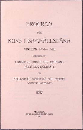 Under vintern 1907-1908 ordnade Landsföreningen för kvinnans politiska rösträtt (LKPR) en kurs i samhällskunskap för sina medlemmar.