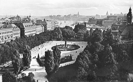Vy över Kungsträdgården mot sydost från NK:s byggnad
