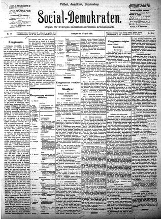 Cigarrarbeterskan Alina Jägerstedt (1858-1919) var det enda kvinnliga ombudet på socialdemokraternas första kongress 1889. Hon var en av sammanlagt tre ombud från Skandinaviska Tobaksarbetareförbundet i Stockholm på kongressen, som pågick 19–22 april 1889 (påskhelgen) i Stockholms Murareförenings lokaler på dåvarande Tunnelgatan 12 i Stockholm.
