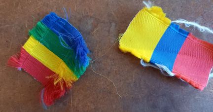 o Gräddvitt tyg, samma mönster som det blå (vävt för drottning Victoria år 1921)