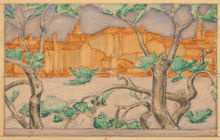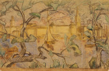 Rörstrand. Kompositionsskiss för Staden vid vattnet, väggmålning i Stockholm stadshus