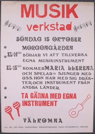 En söndag i oktober ordnar Farsta kulturkommitté m.fl. musikverkstad med tillverkning av egna instrument.