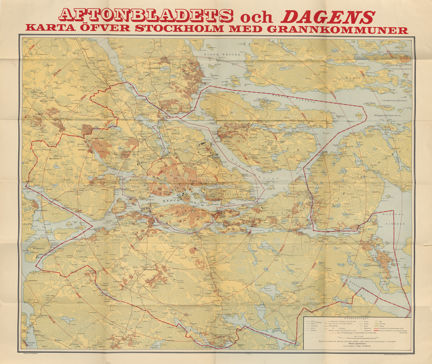 Stockholms stadsarkivs kartsamling NS 442, SE/SSA/0234/J 2 C:23 Aftonbladet och Dagens karta över Stockholm med grannkommuner (odaterad)