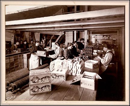 Verksamheten i Barnängens fabriksanläggning här på Bondegatan 59 bedrevs i början under väldigt enkla förhållanden. Tillverkningen av bläck, tvål, Eau de Cologne och även tandpulver gjordes här för hand.