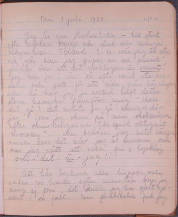 Jag är nu studentska – till slut efter mycken kamp och strid och många bekymmer. Ibland t.ex. när jag är ute och går kan jag gripas av en ”panisk” glädje över att det verkligen är sant! Jag har ju i vår så ofta varit ute ensam och gått för att vila från läsningen och då har jag ju alltid haft detta stora hemska framför mig skall det gå? Det måste ju gå annars dör jag!
