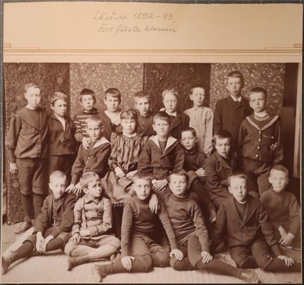 Klassfotografiet visar barn från det som kallades övre första klassen. Skolan hade ännu inte samundervisning med pojkar och flickor i samma klass. Men på fotografiet syns en flicka.