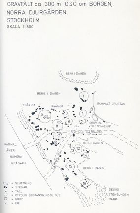 Välbevarat gravfält, som består av tre högar och tre stensättningar. Gravfältet ligger på ett storslaget läge som en tydlig markör och landmärke i landskapet, bland annat exponerat mot gravfältet vid Borgen på Ladugårdsgärdet, som också är vikingatida.