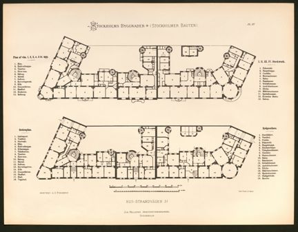 Det Bünsowska huset på Östermalm uppfördes 1886-1888. Byggnadens planer ritades av Anders Gustaf Forsberg och fasaden ritades av Isak Gustaf Clason. De tryckta planritningarna är hämtade ur boken ”Stockholms-byggnader” från 1892. Ritningarna speglar dåtidens ideal och normer för den välbärgade borgarklassens bostäder. Byggnadens ingångar och de stora paradvåningarnas planlösning har en tydlig uppdelning som separerade herrskap och tjänstefolk. Mannen i familjen hade dessutom eget herrum.