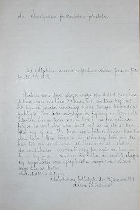 Så här skrev lärarinnan Aurore Söderholm i sitt brev till Överstyrelsen för Stockholms folkskolor: