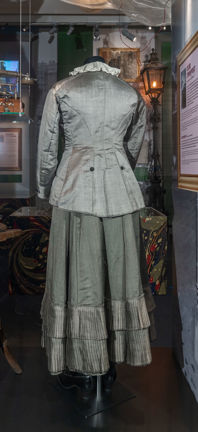 Dräkt i två delar – överdel och kjol – som tillhört kontorsarbetaren Elin Uddqvist (okänt födelseår, död 1932).