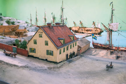 Det så kallade skeppsbyggmästarbostället, uppfört 1748, är den enda av byggnaderna från det gamla varvsområdet som finns bevarad idag. En annan av detaljbilderna visar smedjehuset, som byggdes 1758.