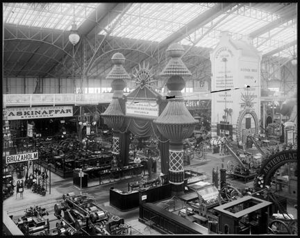 Interiör från maskinhallen på 1897 års Allmänna konst- och industriutställning på Djurgården