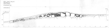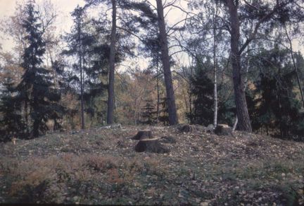 Skärvstenshög, rund, 15 meter stor och 1 meter hög, uppbyggd av 0,1-0,6 meter stora, skarpkantade stenar med mylla som fyllning. Botten utgjordes av pinnmo och i den SSV delen av lera. Omedelbart under torven påträffades ett, 10 meter stort och 0,6 meter tjockt sotlager, innehållande keramik, bränd lera, malstenar, djurtänder och kol.