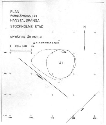 Ur: Fornlämning 144, Spånga, Hansta. Arkeologisk rapport. SSM 1971.