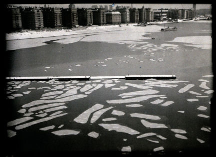 Riddarfjärden med isflak. I fonden husen vid Norr Mälarstrand