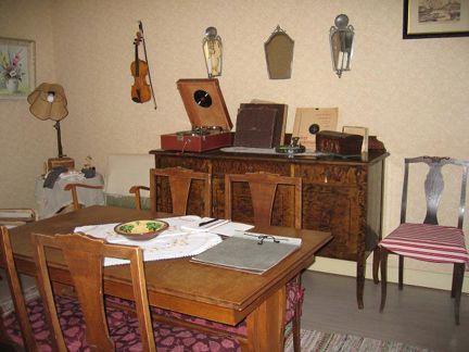 Vardagsrummet eller stora rummet med matbordet i mitten. Här åt man endast när någon hade födelsedag och på julen. Rummet var samtidigt föräldrarnas sovrum.
