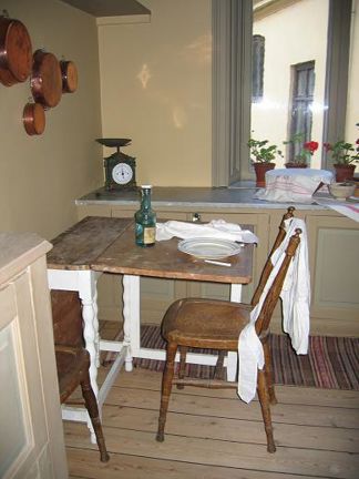 En del av köket. Stuckatörens våning är en av Stadsmuseets filialer. Huset byggdes 1884 av Stuckatören Axel Notini. Redan från början fanns flera lägenheter i huset. Här i familjens egen våning kan man se vilka inredningsideal en borgerlig familj i slutet av 1800-talet kunde ha.