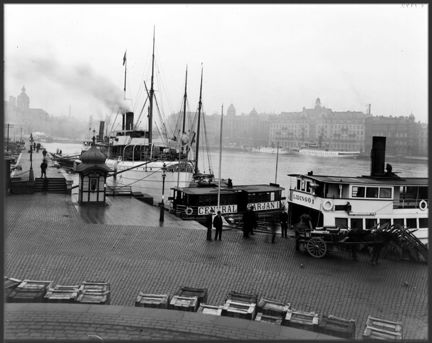 Skeppsbrokajen norrut vid Gustav III:s staty