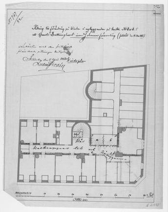 Om du har frågor om den här ritningen ska du kontakta det museum, arkiv eller bibliotek där originalritningen finns. Ange länken till textens sida i Stockholmskällan så är det lättare för dem att hjälpa dig vidare.