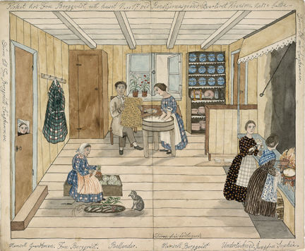 Köket hos fru Bergqvist, uti huset Nro 17 vid Renstjernasgränd, Qvarteret Kransen