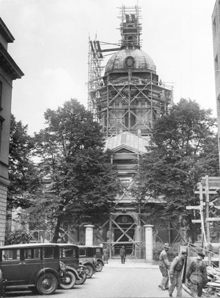 Adolf Fredriks kyrka under renovering från Wallingatan